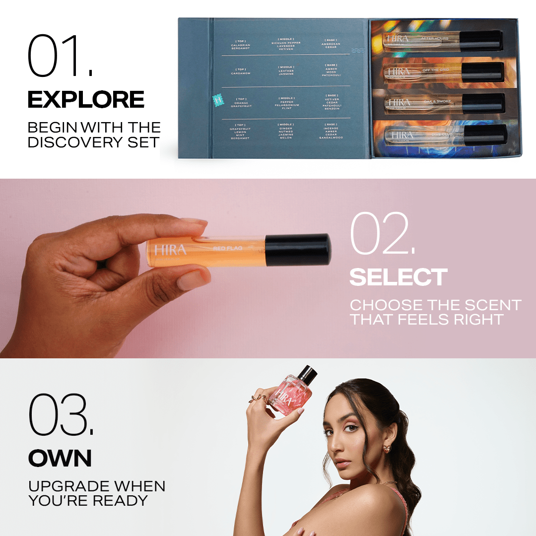 You receive eight 10ML perfumes in total. Four are curated for him and four for her allowing a complete exploration of the brand’s fragrance profiles.
